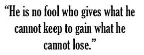 “He is no fool who gives what he cannot keep for that which he cannot lose.” Jim Eliot had penned in his journal October 28, 1949. January 8, 1956 Jim Eliot and four other missionaries were killed by Auca Indians in Ecuador. They had flown over the Auca village for months dropping gifts to win their hearts so that they might share the good news of Christ with them.